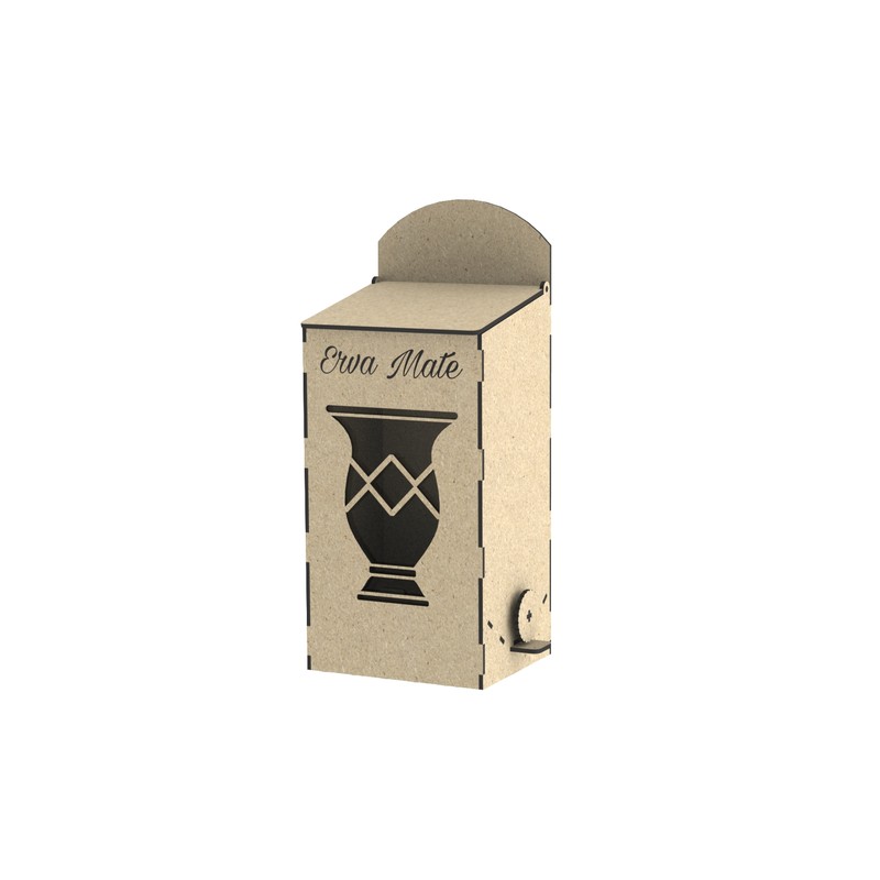 صندوق خشبي بتصميم أنيق مزين بنقوش “Erwa Mate” وآنية تقليدية، تم قطعه بدقة بالليزر لتجسيد تفاصيل رائعة.