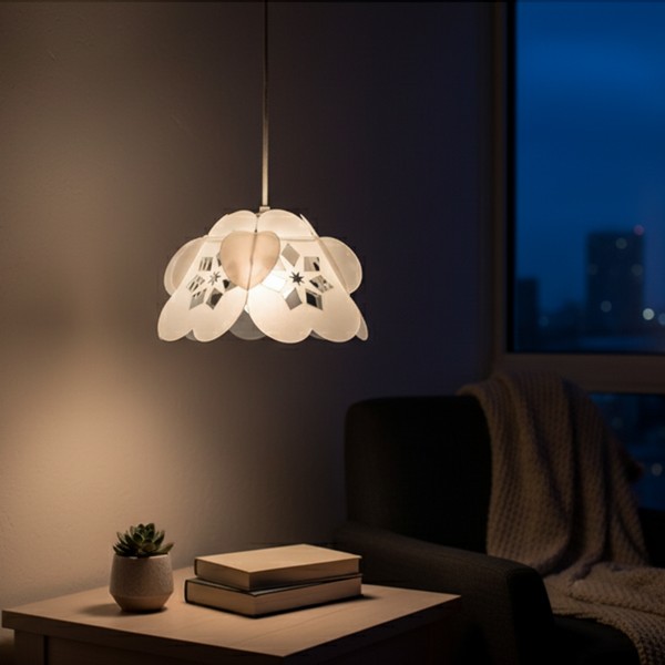 تصميم رقمي لمصباح سقف معلق على شكل زهرة للقص بالليزر
