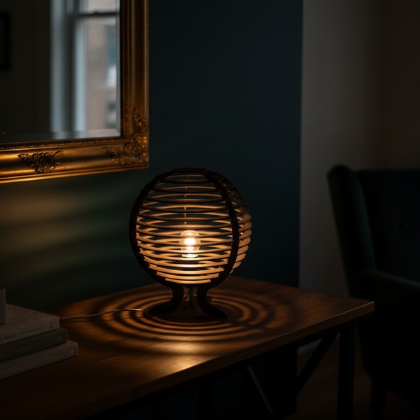 تصميم رقمي لمصباح طاولة كروي للقص بالليزر: قم بإنشاء مصباح طاولة فريد وأنيق باستخدام هذا التصميم الرقمي الجاهز للقص بالليزر.