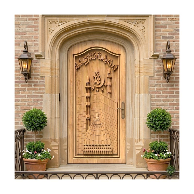 يضفي نقش باب الكعبة المشرفة المصمم ببراعة لمسة روحانية وجمالية فريدة، محولاً باب منزلك إلى تحفة فنية تجسد عظمة التصميم الإسلامي.