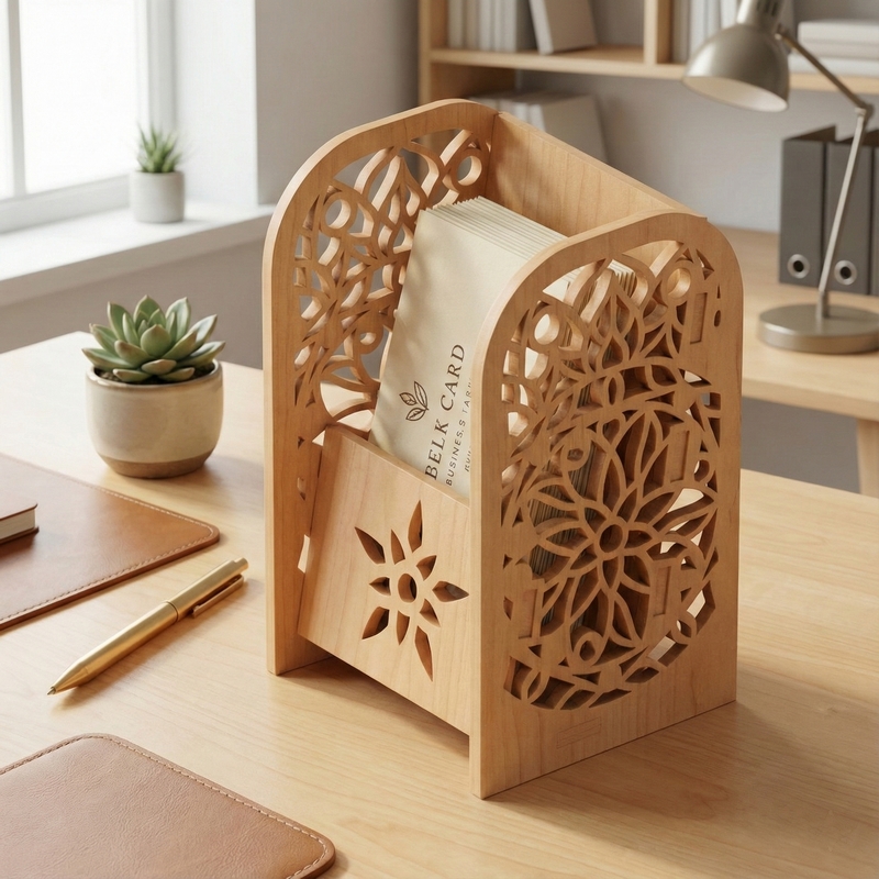 احصل على ملف SVG لتصميم حامل بطاقات عمل خشبي مع زخرفة نباتية اليوم وابدأ في إنشاء قطعة فريدة من نوعها تعكس أسلوبك وتضيف لمسة من الرقي إلى مساحة عملك!