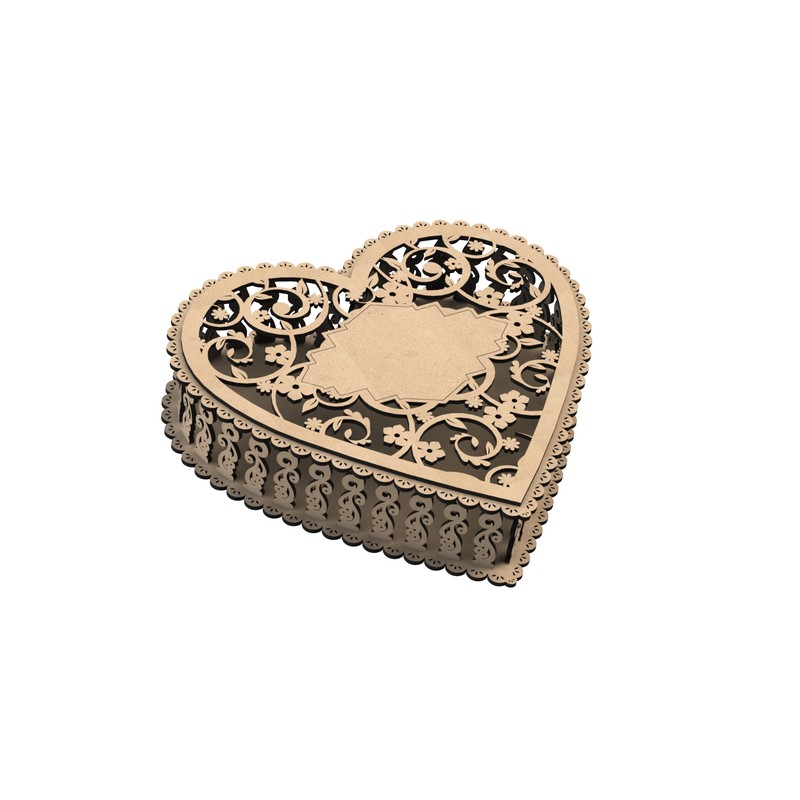 صندوق هدايا بتصميم قلب، مطعّم بزخارف وزهور مقطوعة بالليزر بدقة متناهية، يضيف لمسة فنية راقية إلى أي مناسبة.