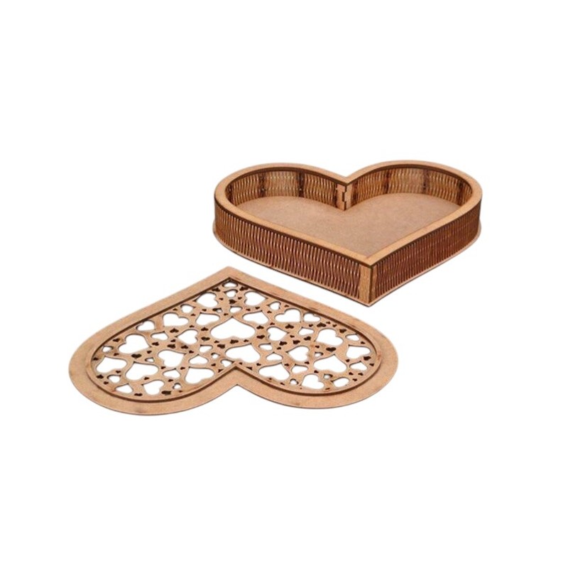 صندوق على شكل قلب بتصميمات رائعة ومقطوعة بالليزر بدقة فائقة، مثالي للتخزين أو كهدية مميزة.
